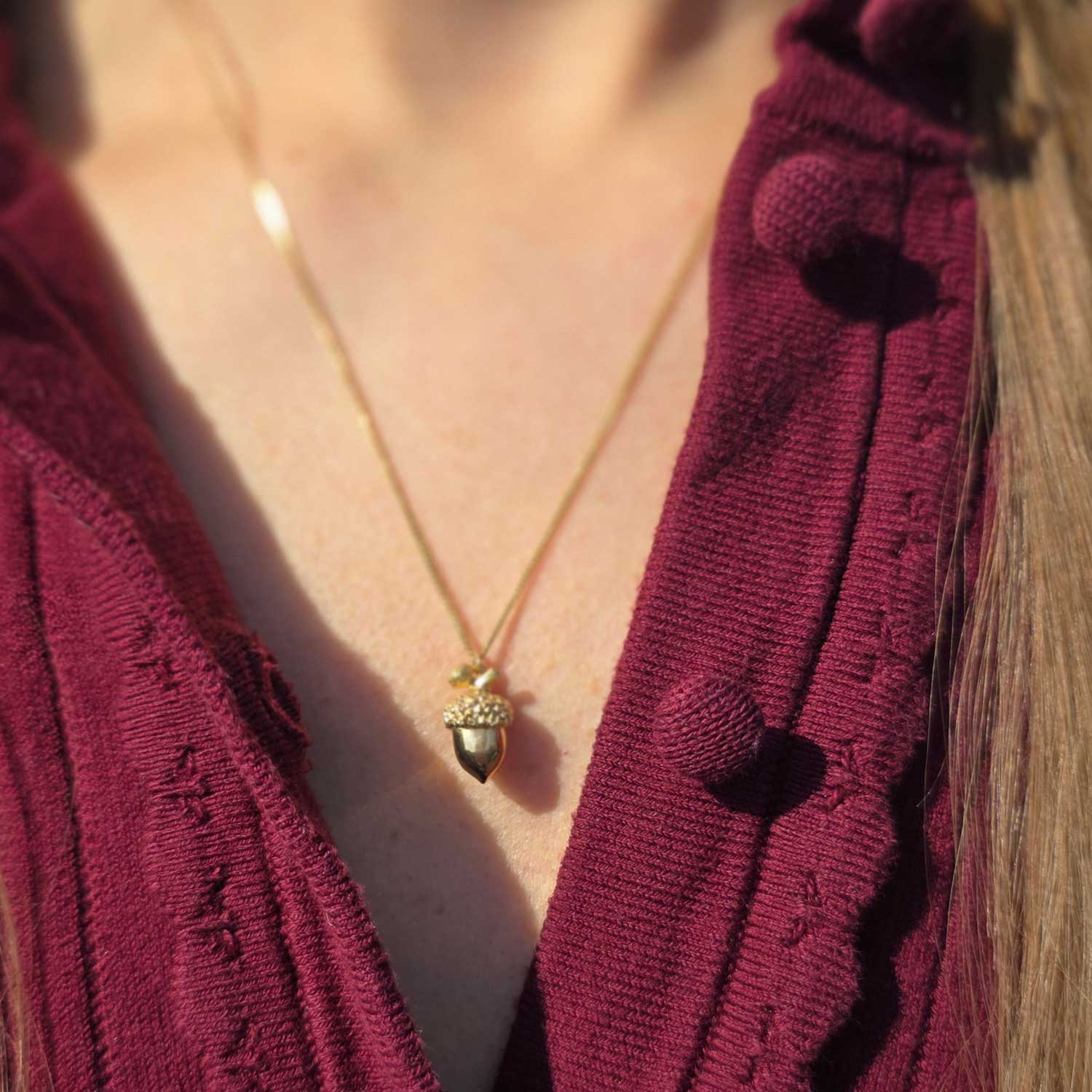 Our acorn necklace is just the cutest accessory and makes the perfect seasonal gift.