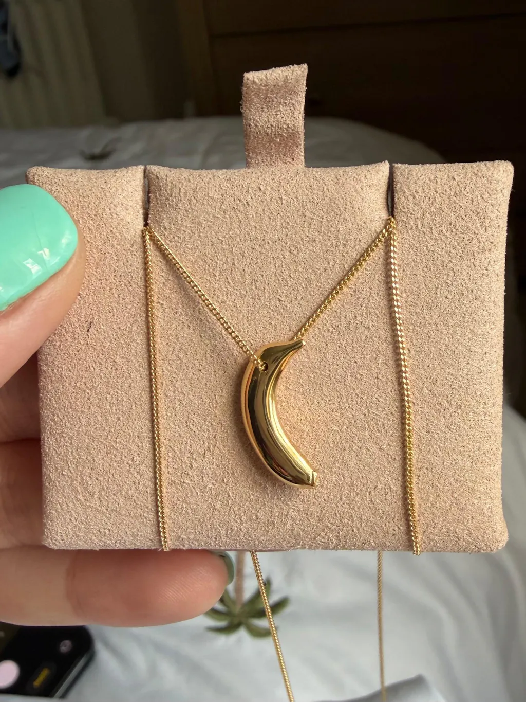 Banana necklace comes beautifully packaged in a Lee Renée branded pouch and presentation box- perfect for gifting.